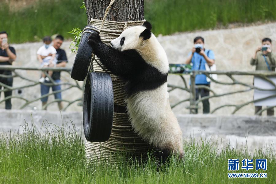 在位于四川省阿壩藏族羌族自治州的九寨溝大熊貓園,大熊貓“海?!痹谕嫠#?月19日攝)。新華社記者沈伯韓攝