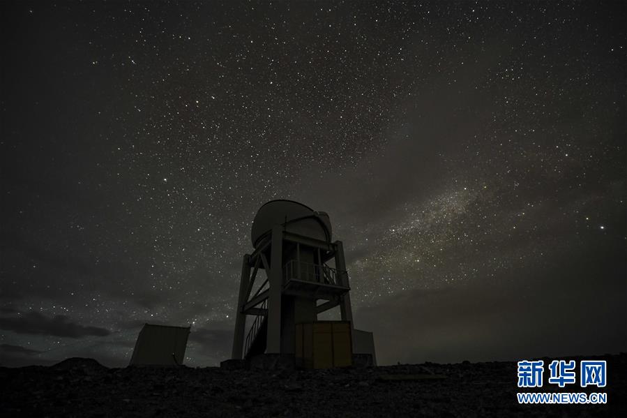星空下的中國科學院新疆天文臺慕士塔格觀測站一角(6月16日攝,長時間曝光)。新華社記者胡虎虎攝