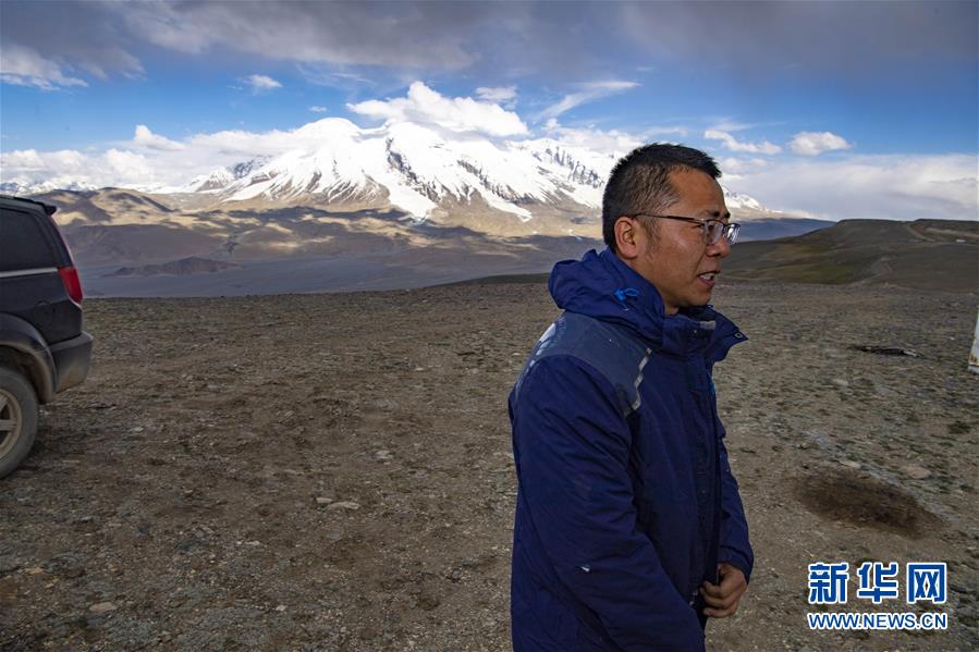 到達(dá)慕士塔格觀測站后,冷風(fēng)襲來,馮國杰穿上沖鋒衣,拉上拉鏈(6月15日攝)。新華社記者胡虎虎攝