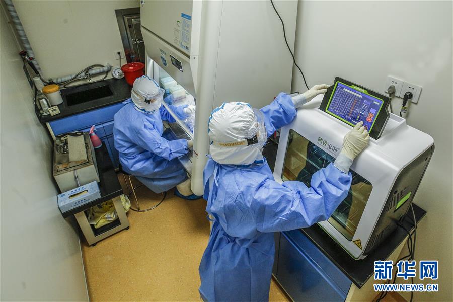 6月23日,兩位檢驗(yàn)人員在實(shí)驗(yàn)室內(nèi)工作。6月15日,北京市普仁醫(yī)院PCR實(shí)驗(yàn)室正式啟用,并立即投入到新冠肺炎病毒核酸檢測工作之中,為新冠肺炎疫情防控增添利器。普仁醫(yī)院PCR實(shí)驗(yàn)室啟用以來,除了來自本院發(fā)熱門診、門急診、病房和核酸檢測采樣點(diǎn)的樣本之外,還承接了社區(qū)以及東城區(qū)集中核酸檢測點(diǎn)采集的部分樣本。新華社記者張玉薇攝