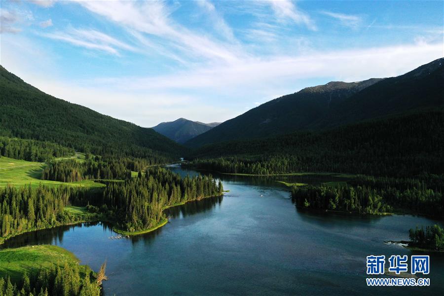 這是6月24日拍攝的新疆喀納斯景區(qū)風光(無人機照片)。新華社記者 沙達提 攝