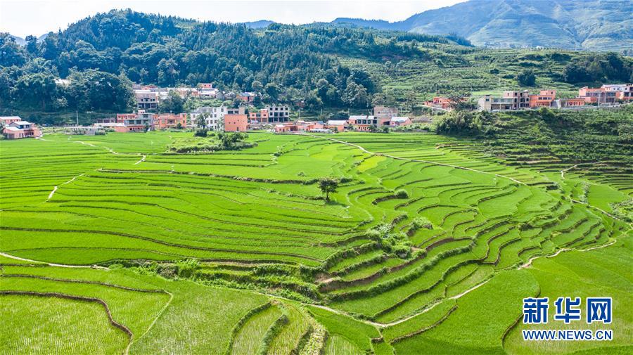 貴州省盤州市新民鎮(zhèn)的梯田風(fēng)光(6月29日攝,無人機照片)。夏日時節(jié),貴州省盤州市新民鎮(zhèn)的梯田風(fēng)景如畫。新華社記者陶亮攝