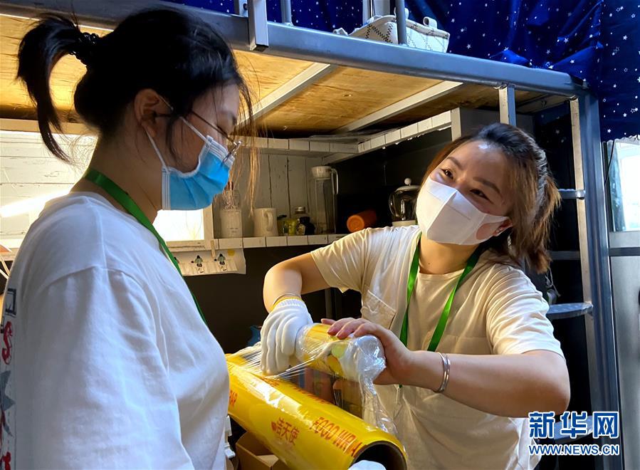 7月1日,在北理工學生宿舍,兩名輔導員在為畢業(yè)生打包行李。6月29日起,北京理工大學教職員工開始為2020屆6000多名需要打包的畢業(yè)生集中進行行李打包、郵寄和留置物品存放工作。經(jīng)過提前與畢業(yè)生“一對一”溝通,老師們耐心細致地通過手機“直播”打包行李的全過程,與每一個同學認真核對其個人物品,細心收納擺放、整理密封、搬運寄送,讓不能返校的畢業(yè)生們安心、放心。新華社記者魏夢佳攝