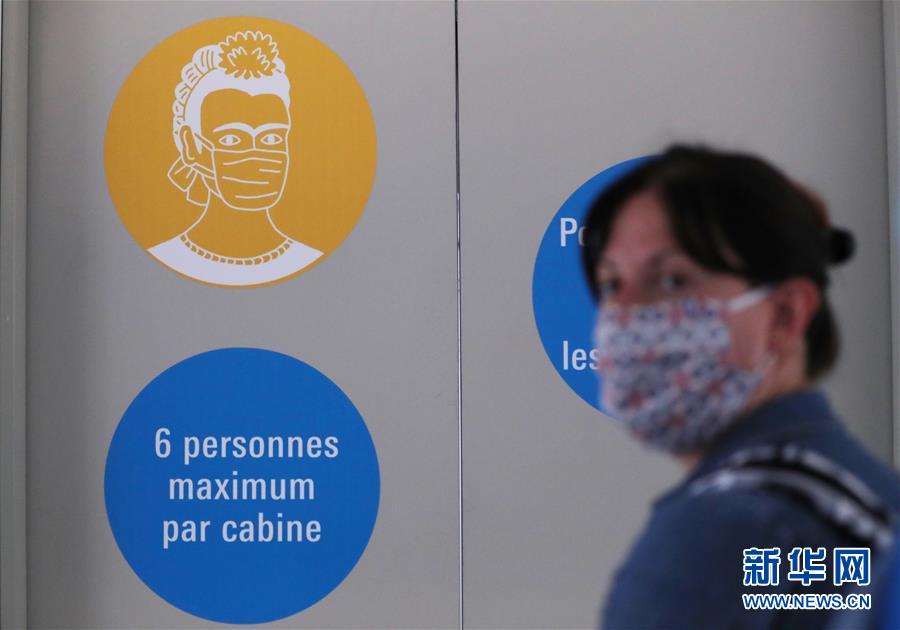 7月1日,法國巴黎蓬皮杜藝術(shù)中心的電梯上貼著“請佩戴口罩”和“最多6人乘梯”的標(biāo)識。因新冠疫情關(guān)閉的法國巴黎蓬皮杜藝術(shù)中心于7月1日重新開門迎客。目前,中心只開放6層的臨時(shí)展區(qū)和4、5層的現(xiàn)代藝術(shù)常設(shè)展區(qū)。參觀者需提前網(wǎng)上預(yù)約參觀時(shí)段,11歲以上參觀者須佩戴口罩,參觀過程中保持安全距離。新華社記者高靜攝