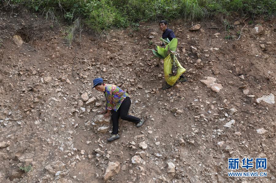 且沙次干、阿達(dá)么日雜夫婦在懸崖峭壁上挖了幾株野生的地涌金蓮花,準(zhǔn)備栽種在新居門(mén)前(6月27日攝)。新華社記者 江宏景 攝