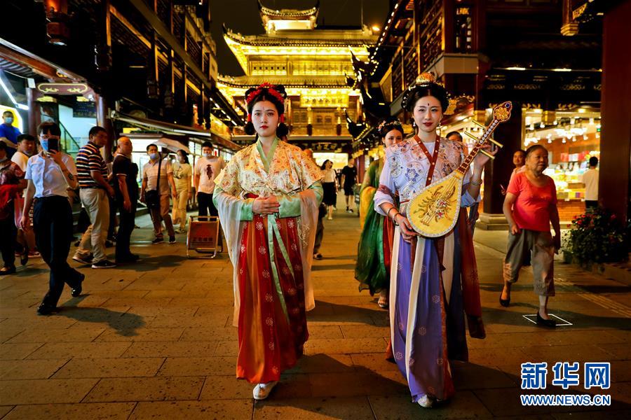 7月3日,上海豫園內(nèi)舉行古裝巡游活動(dòng)。從7月第一個(gè)周末起,上海豫園原有的“豫園六點(diǎn)半”集市全面升級(jí),煥彩燈光、演藝活動(dòng)和花車集市全線更新,讓市民和游客在觀燈、觀人、觀演的沉浸式體驗(yàn)中,享受夏日特色的“食玩”樂(lè)趣。新華社記者 劉穎 攝