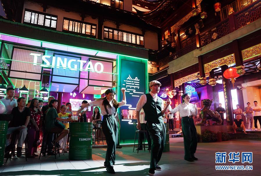 7月3日,游人在上海豫園中心廣場(chǎng)觀看街舞表演。從7月第一個(gè)周末起,上海豫園原有的“豫園六點(diǎn)半”集市全面升級(jí),煥彩燈光、演藝活動(dòng)和花車集市全線更新,讓市民和游客在觀燈、觀人、觀演的沉浸式體驗(yàn)中,享受夏日特色的“食玩”樂趣。新華社記者 劉穎 攝