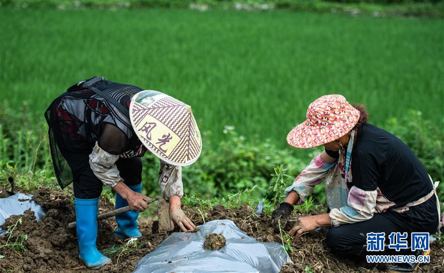 7月6日,貴州省六枝特區(qū)郎岱鎮(zhèn)青龍村村民在田地里勞作。當日是小暑節(jié)氣,貴州省各地農民不誤農時,忙碌在田間地頭。新華社記者陶亮攝
