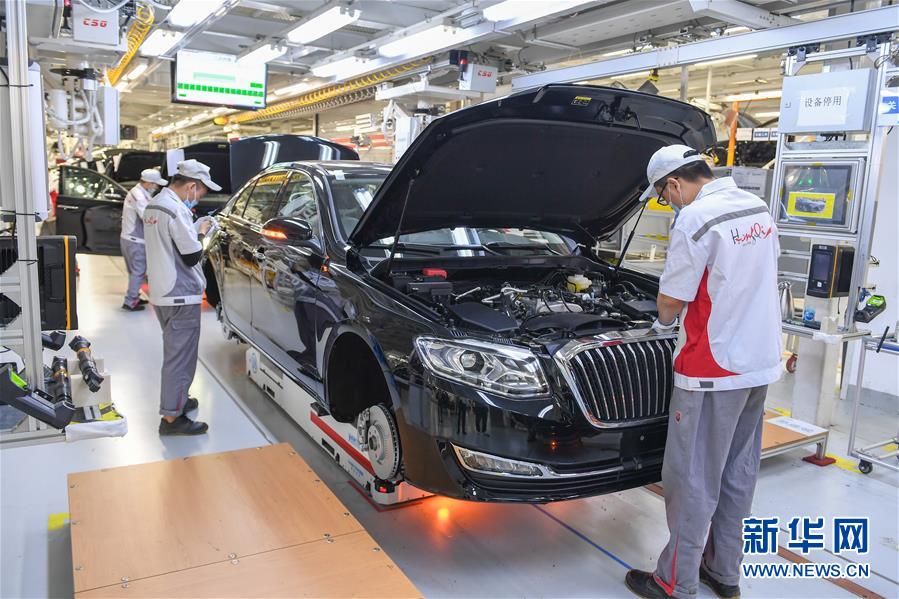 在位于長春市的一汽紅旗總裝車間,工人在裝配車輛(6月19日攝)。中國第一汽車集團(tuán)披露,截至6月30日,集團(tuán)上半年共計生產(chǎn)整車162.23萬輛,同比增長1.5%;銷售整車163.09萬輛,同比增長2.3%。新華社記者張楠攝