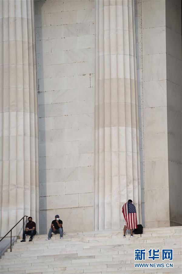 7月8日,在美國華盛頓,一名披著美國國旗的男子站在林肯紀念堂臺階上。美國約翰斯·霍普金斯大學8日發(fā)布的新冠疫情最新統(tǒng)計數(shù)據(jù)顯示,美國累計確診病例超過300萬例。數(shù)據(jù)顯示,截至美國東部時間8日11時34分(北京時間23時34分),美國累計確診病例3016515例,累計死亡病例131594例。新華社記者劉杰攝