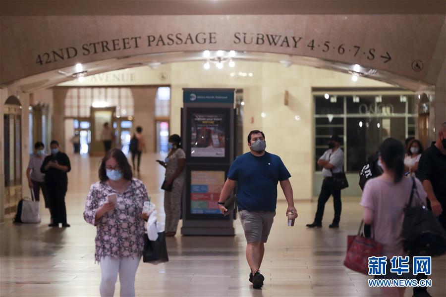 7月8日,人們在美國紐約中央車站內(nèi)等候乘車。美國約翰斯·霍普金斯大學8日發(fā)布的新冠疫情最新統(tǒng)計數(shù)據(jù)顯示,美國累計確診病例超過300萬例。數(shù)據(jù)顯示,截至美國東部時間8日11時34分(北京時間23時34分),美國累計確診病例3016515例,累計死亡病例131594例。新華社記者王迎攝