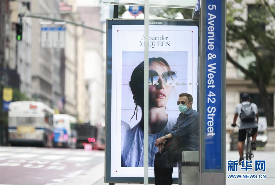 7月8日,一名男子在紐約第五大道的公交車站等車。美國約翰斯·霍普金斯大學8日發(fā)布的新冠疫情最新統(tǒng)計數(shù)據(jù)顯示,美國累計確診病例超過300萬例。數(shù)據(jù)顯示,截至美國東部時間8日11時34分(北京時間23時34分),美國累計確診病例3016515例,累計死亡病例131594例。新華社記者王迎攝