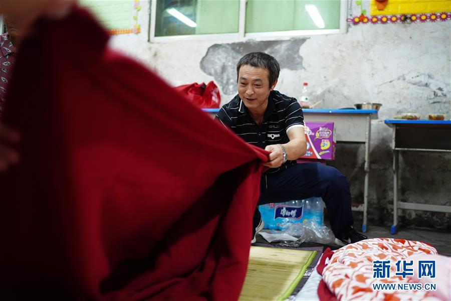 7月9日,在教室安置的村民將剛剛得到的寢具鋪在地上準(zhǔn)備睡覺。當(dāng)日,江西鄱陽縣鄱陽鎮(zhèn)因洪水受災(zāi)的村民被轉(zhuǎn)移到多個集中安置點。在鄱陽縣五一中心學(xué)校安置點,志愿者和工作人員接到任務(wù)后不到十小時內(nèi),為被轉(zhuǎn)移村民布置了28間教室,供519人安頓,并為村民發(fā)放褥子、床單、枕頭、盒飯、飲用水等物資。新華社記者周密攝