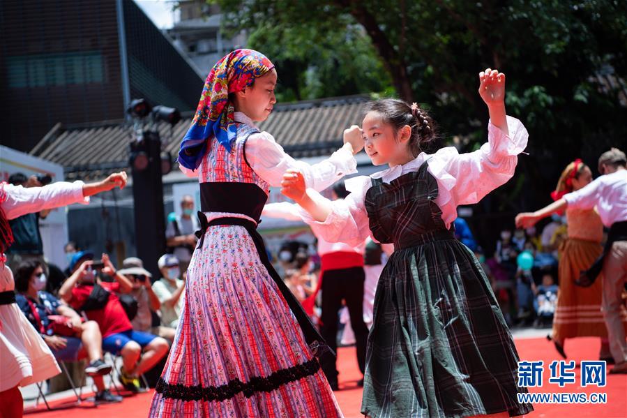 7月11日,演員在“慶祝澳門歷史城區(qū)申遺成功15周年嘉年華”上表演土風舞。新華社記者張金加攝