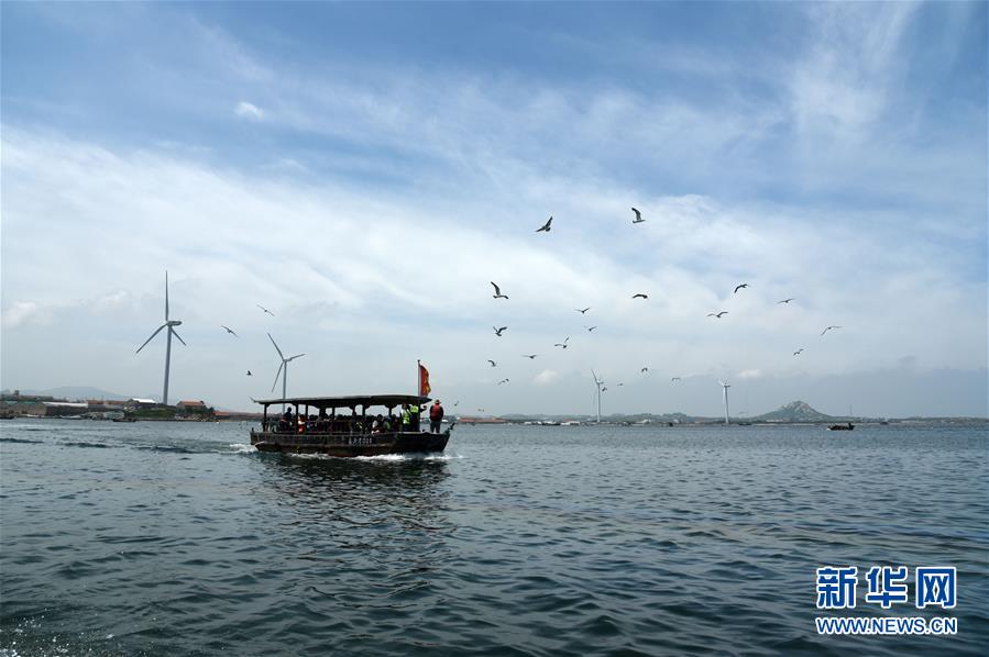 7月17日,游客乘坐觀光船參觀榮成桑溝灣泓泰國家級(jí)海洋牧場。近年來,山東省榮成市重點(diǎn)發(fā)展特色海洋旅游產(chǎn)業(yè),打造眾多國家級(jí)海洋牧場,保留修復(fù)傳統(tǒng)海草民居,吸引游客前來觀光體驗(yàn)。如今特色海洋旅游已逐漸成為榮成經(jīng)濟(jì)發(fā)展新的增長點(diǎn)。新華社記者王凱攝