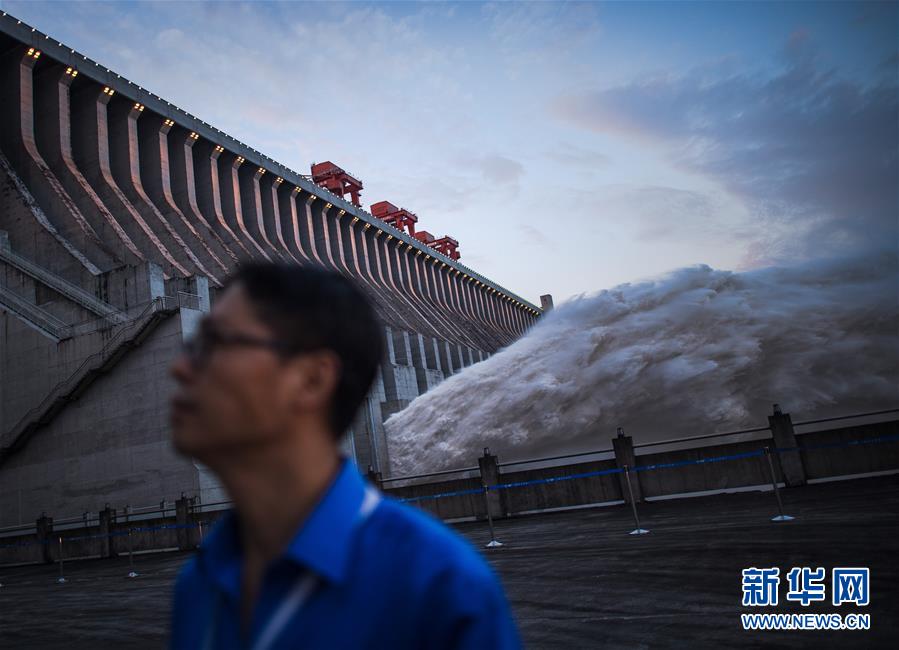 7月19日,工作人員在三峽樞紐前巡查。19日20時(shí),三峽水庫(kù)入庫(kù)流量4.6萬(wàn)立方米/秒,較本輪洪水的峰值6.1萬(wàn)立方米/秒下降了1.5萬(wàn)立方米/秒?!伴L(zhǎng)江2020年第2號(hào)洪水”平穩(wěn)通過(guò)三峽大壩。新華社記者肖藝九攝