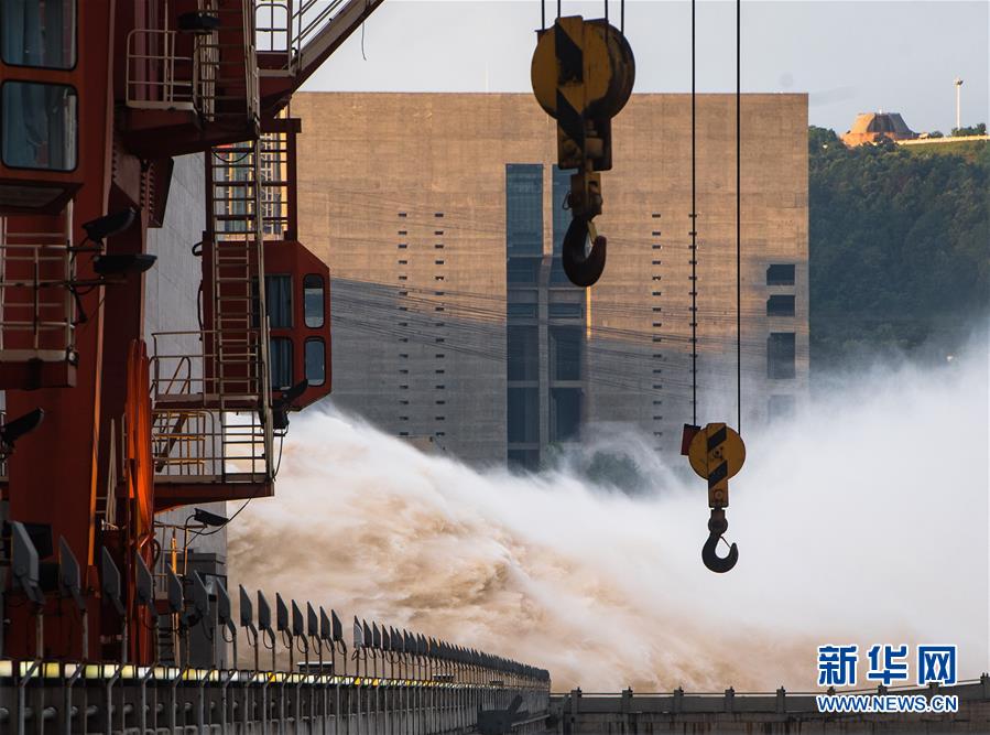 7月19日,三峽樞紐開(kāi)啟泄洪深孔泄洪。19日20時(shí),三峽水庫(kù)入庫(kù)流量4.6萬(wàn)立方米/秒,較本輪洪水的峰值6.1萬(wàn)立方米/秒下降了1.5萬(wàn)立方米/秒?!伴L(zhǎng)江2020年第2號(hào)洪水”平穩(wěn)通過(guò)三峽大壩。新華社記者肖藝九攝