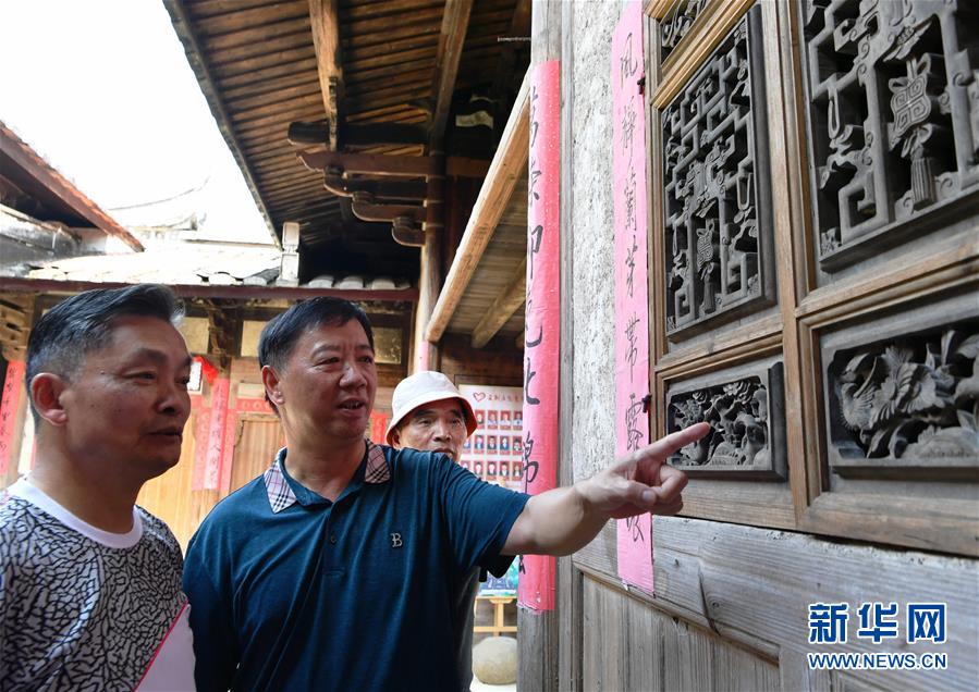 7月19日,游客在永泰縣同安鎮(zhèn)愛荊莊里聽永泰縣莊寨民俗專家鮑道文(左二)現(xiàn)場(chǎng)講解。近年來,福建省福州市永泰縣重視古莊寨保護(hù)與利用工作,遵循“保護(hù)為主、修舊如舊”原則,加大修繕保護(hù)力度,通過對(duì)古莊寨古村落等物質(zhì)載體進(jìn)行活化利用,打造莊寨+旅游、莊寨+研學(xué)等產(chǎn)業(yè)發(fā)展模式,帶動(dòng)鄉(xiāng)村振興。永泰縣地處福州西南部,擁有保存較好的古莊寨152座,面積1000平方米以上、年代100年以上98座。新華社記者魏培全攝