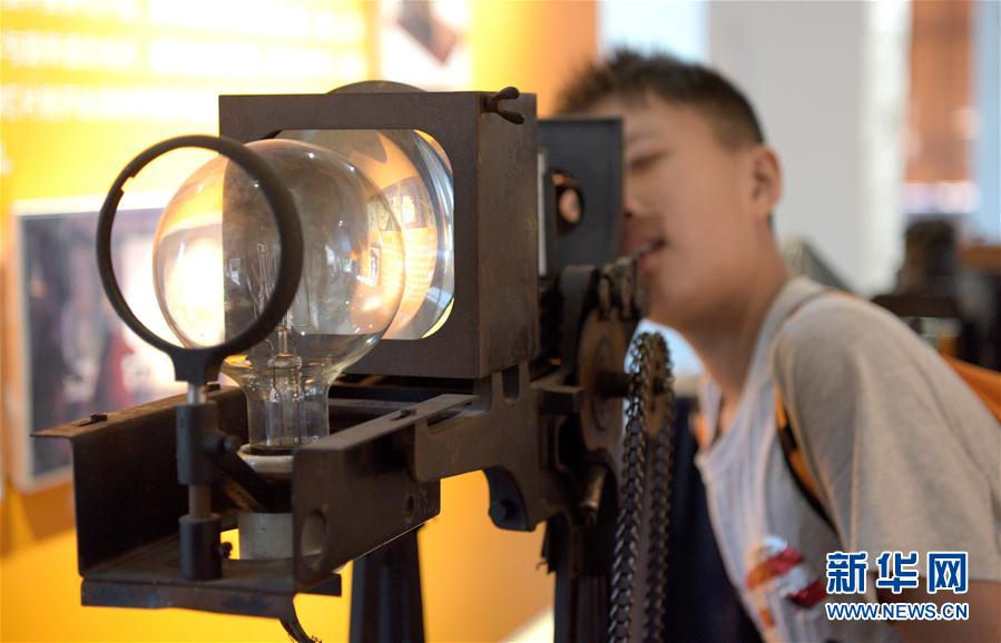 2019年8月29日,參觀者在西影電影藝術(shù)體驗中心參觀展出的老式幻燈機。當(dāng)日,陜西省西安市西影電影藝術(shù)體驗中心正式對外開放。新華社記者劉瀟攝
