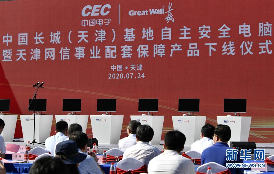 7月24日在中國(guó)長(zhǎng)城(天津)基地拍攝的儀式現(xiàn)場(chǎng)。當(dāng)日,中國(guó)長(zhǎng)城(天津)基地自主安全電腦暨天津網(wǎng)信事業(yè)配套保障產(chǎn)品下線儀式在天津?yàn)I海高新區(qū)舉行。據(jù)了解,中國(guó)長(zhǎng)城(天津)基地網(wǎng)信事業(yè)配套保障體系項(xiàng)目主要服務(wù)華北地區(qū),生產(chǎn)國(guó)產(chǎn)化自主安全電腦,建設(shè)國(guó)產(chǎn)化自主安全數(shù)據(jù)中心。新華社記者李然攝