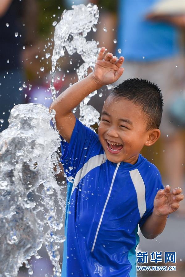 7月24日,一名小男孩在北京華熙LIVE·五棵松商業(yè)街區(qū)的一處噴泉戲水。北京市氣象局7月24日傍晚發(fā)布稱,24日截至16時30分,平原大部分地區(qū)出現(xiàn)37℃以上高溫天氣,局地氣溫超過40℃。北京市已于23日發(fā)布高溫藍(lán)色預(yù)警,預(yù)計25日全市大部分地區(qū)日最高氣溫仍將達(dá)35℃以上。新華社記者陳曄華攝