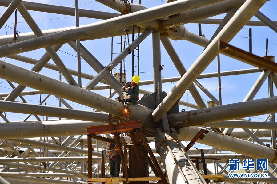7月27日,工人在拉薩貢嘎國(guó)際機(jī)場(chǎng)T3航站樓的工地上作業(yè)。新華社記者 田金文 攝