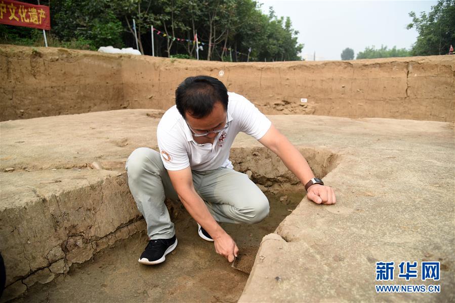 7月28日,考古工作者在對(duì)濟(jì)南梁王遺址內(nèi)戰(zhàn)國(guó)時(shí)期古城遺址進(jìn)行考古發(fā)掘。新華社記者王凱攝