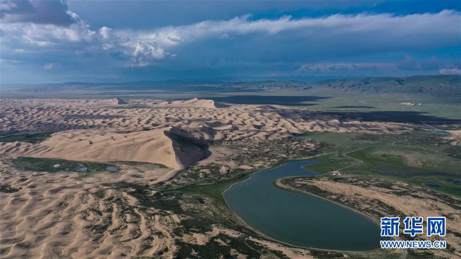 這是7月28日拍攝的青海湖沙島一隅(無(wú)人機(jī)照片)。盛夏傍晚,位于青海湖東北部的沙島,島內(nèi)湖泊星羅棋布,沙丘連綿起伏,風(fēng)景別致。金沙與湖水掩映,在陽(yáng)光的勾勒下形成一幅美麗的畫卷。新華社記者吳剛攝