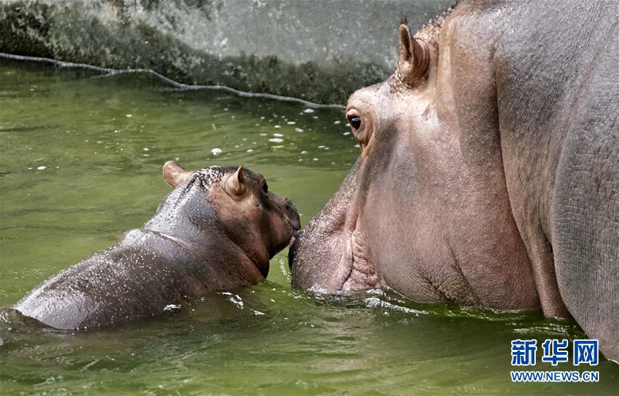 北京動物園的河馬母子在恒溫水池內(nèi)乘涼(7月30日攝)。炎炎夏日,北京動物園根據(jù)動物生活習(xí)性,為動物配備了自動噴淋噴霧、空調(diào)籠舍、恒溫水池、遮陽棚等各類避暑設(shè)施,同時還準備了西瓜等降溫食品,保障動物平安舒適地度過伏天。新華社記者李欣攝