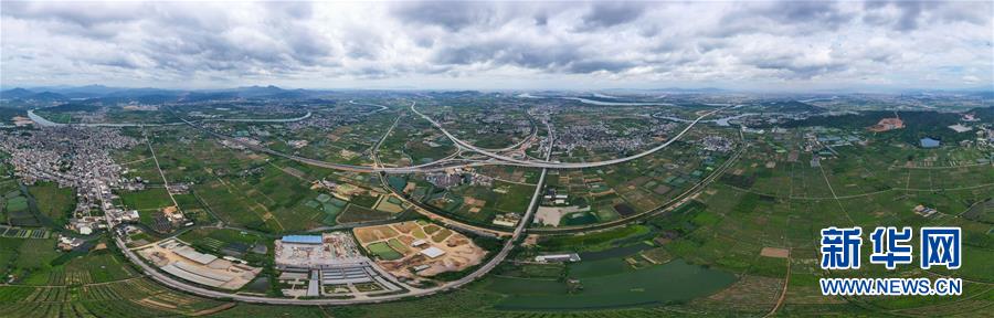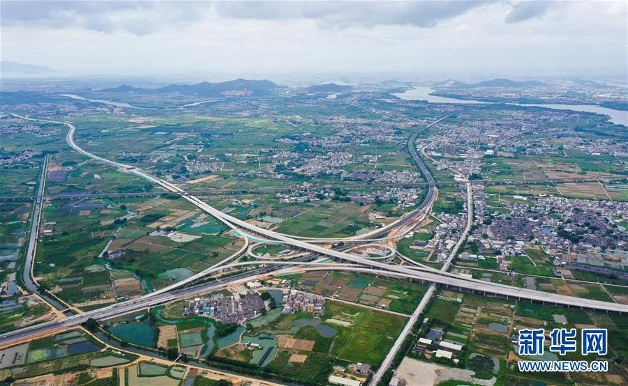 這是已經(jīng)建設(shè)完成的潮汕環(huán)線高速公路上北互通立交,沈海高速公路從該互通立交下面穿過(guò)(無(wú)人機(jī)照片,7月31日攝)。新華社記者劉大偉攝