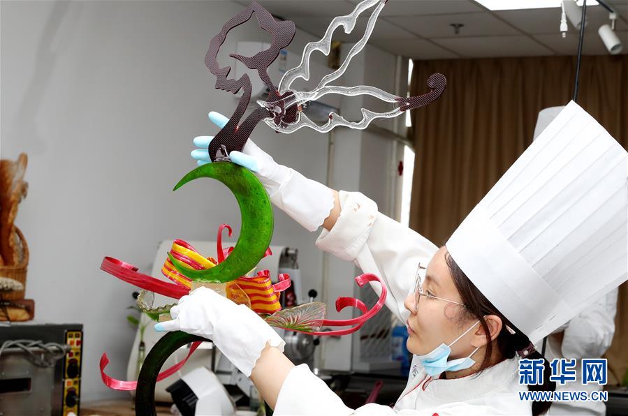 8月5日,糖藝比賽參賽選手在創(chuàng)作中。當(dāng)日,第二十一屆全國焙烤職業(yè)技能競賽上海賽區(qū)選拔賽,在上海市現(xiàn)代食品職業(yè)技能培訓(xùn)中心舉行,來自上海、江蘇、浙江等地的近60名焙烤行業(yè)技師,在藝術(shù)面包、傳統(tǒng)糕點(diǎn)、糖藝和藝術(shù)巧克力等項(xiàng)目中進(jìn)行比拼,在充滿焙烤香氣的賽場上展現(xiàn)技藝。新華社記者方喆攝