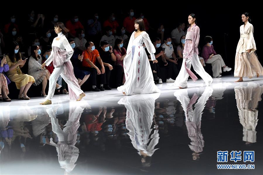 8月6日,模特在時(shí)裝秀上展示時(shí)裝。當(dāng)日,2020中國(河南)國際大學(xué)生時(shí)裝周舉行河南大學(xué)生優(yōu)秀服裝設(shè)計(jì)專場(chǎng)展示。8月5日至7日,2020中國(河南)國際大學(xué)生時(shí)裝周在河南省新密市豫發(fā)密蘭小鎮(zhèn)舉行。新華社記者朱祥攝