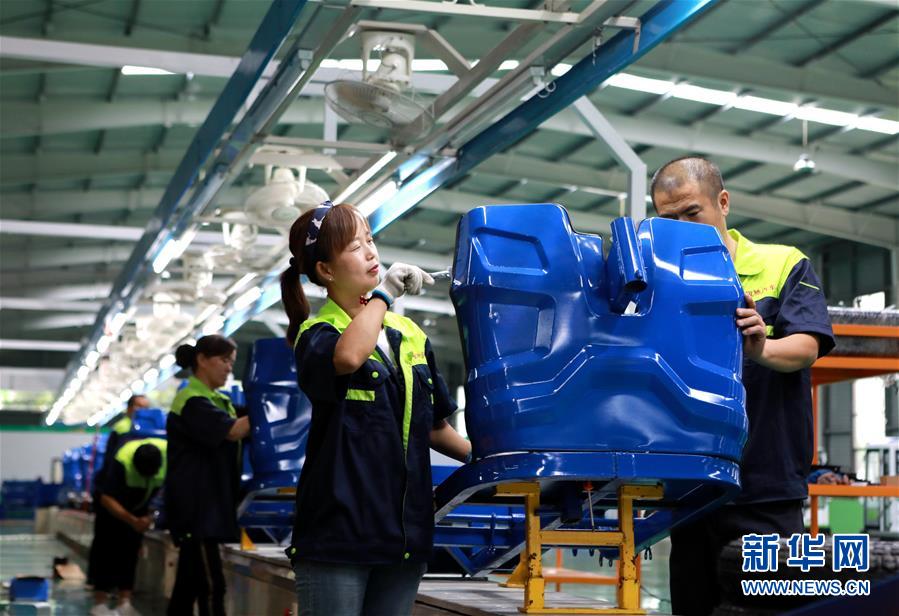 8月6日,工人在廣平縣一家新能源汽車企業(yè)的生產(chǎn)車間里工作。復(fù)工復(fù)產(chǎn)以來,河北省廣平縣的新能源汽車企業(yè)加緊趕制訂單。同時,當(dāng)?shù)卣峁└黜椈萜笳?,加大幫扶支持力度,及時解決企業(yè)資金、用工等困難,助力企業(yè)發(fā)展。新華社記者王曉攝