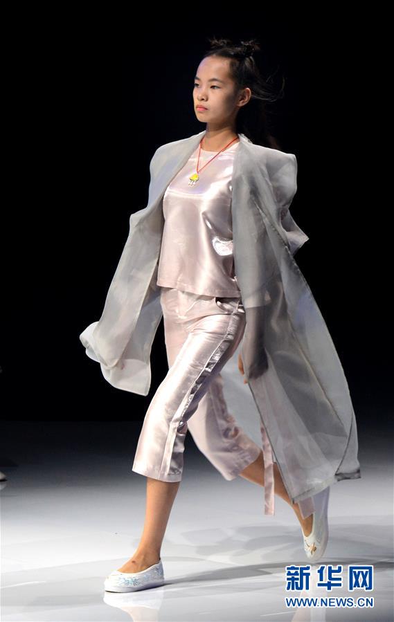 8月7日,小模特在T臺上展示童裝。當(dāng)日,2020中國(河南)國際大學(xué)生時(shí)裝周舉行童裝設(shè)計(jì)專場展示。8月5日至7日,2020中國(河南)國際大學(xué)生時(shí)裝周在河南省新密市豫發(fā)密蘭小鎮(zhèn)舉行。新華社發(fā)(海雨涵攝)