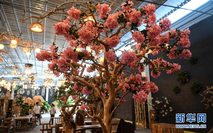 這是8月7日在永福縣永安鄉(xiāng)根雕工藝品就業(yè)扶貧車間拍攝的根雕工藝品。2017年以來,廣西桂林市永??h永安鄉(xiāng)通過幫扶返鄉(xiāng)青年創(chuàng)業(yè)的方式,建立起根雕工藝品就業(yè)扶貧車間,組織貧困群眾進車間務(wù)工學(xué)藝,把當(dāng)?shù)刎S富的朽木和柑橘樹根枝資源利用起來,加工成盆景、茶桌、吊燈等根雕工藝品,不僅幫助貧困群眾在家門口掌握一技之長,還讓他們在脫貧摘帽后實現(xiàn)穩(wěn)定增收。新華社記者張愛林?jǐn)z