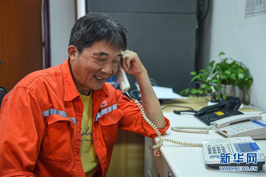 7月27日,在位于南海北部海域的勘探三號(hào)鉆井平臺(tái)上,一名工人通過(guò)衛(wèi)星電話與家人聯(lián)絡(luò)。鉆井平臺(tái)上沒(méi)有手機(jī)信號(hào),這是鉆井工人與家人聯(lián)絡(luò)的重要渠道。新華社記者蒲曉旭攝