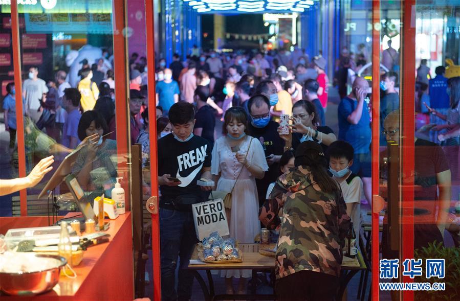 8月8日晚,市民在望京小街商業(yè)街購(gòu)買(mǎi)小吃。新華社記者 陳鐘昊 攝