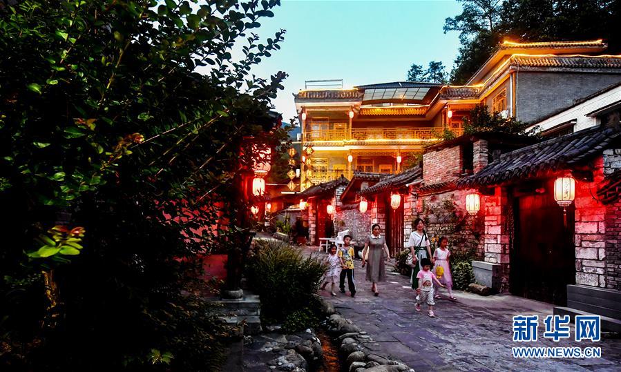 游客在陜西寶雞市太白縣咀頭鎮(zhèn)白云村的一家農(nóng)家樂里就餐(7月5日攝)。白云村是秦嶺深處的小山村,2016年建檔立卡貧困戶303人。近年來,為了徹底改變貧困面貌,白云村依靠當(dāng)?shù)匾郎桨牡赜騼?yōu)勢,全面提升人居環(huán)境和村容村貌,發(fā)展鄉(xiāng)村旅游,讓群眾持續(xù)增收。目前,白云村已實現(xiàn)整體脫貧,2019年全村人均純收入12880元。新華社記者劉瀟攝。