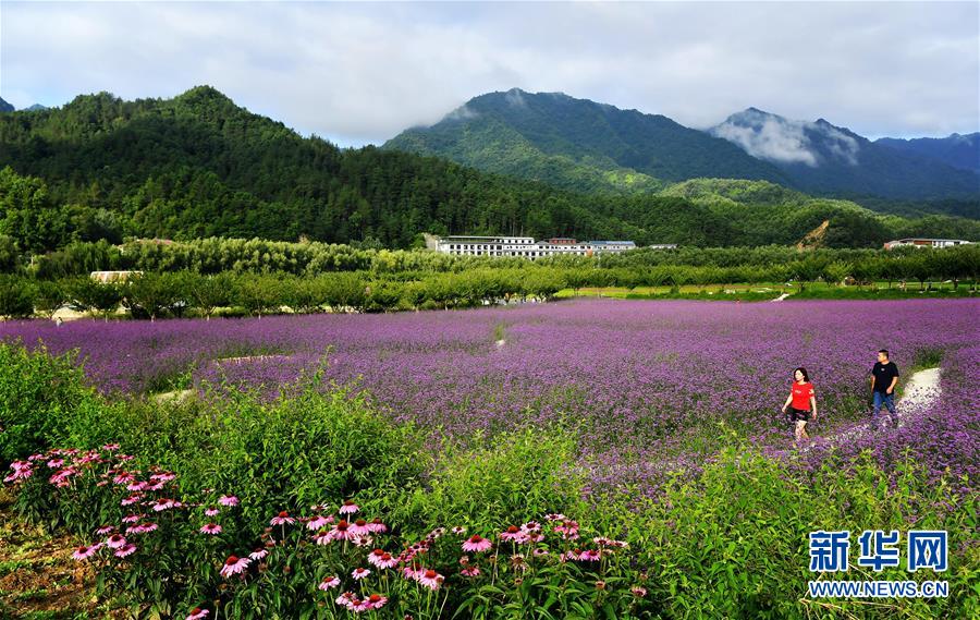 市民在位于陜西漢中市留壩縣城的金水灣花海散步(7月2日攝)。近年來,陜西地處秦巴山區(qū)的多個縣市結(jié)合當(dāng)?shù)刈匀粴夂驐l件打造特色花海景觀,利用“花海經(jīng)濟”助力脫貧攻堅和鄉(xiāng)村振興。新華社記者劉瀟攝。