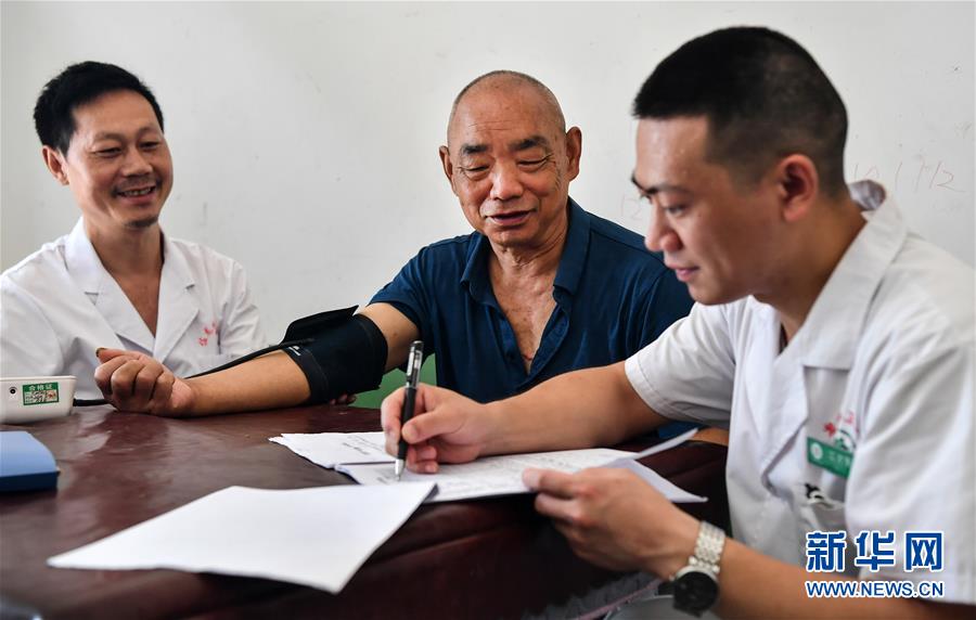 陜西安康市嵐皋縣佐龍鎮(zhèn)中心衛(wèi)生院的醫(yī)生在佐龍村對家庭醫(yī)生簽約服務(wù)對象進行慢性病隨訪(7月30日攝)。目前,嵐皋縣組建了71個鎮(zhèn)級家庭醫(yī)生服務(wù)團隊、15個縣級技術(shù)指導(dǎo)團隊,對貧困群眾開展重點人群免費體檢、慢病隨訪、健康生活指導(dǎo)、健康扶貧政策宣傳等簽約服務(wù)項目。新華社記者劉瀟攝。