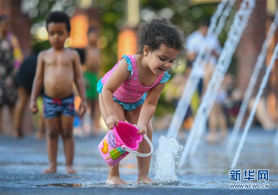 8月8日,一名兒童在德國法蘭克福一處噴泉內(nèi)戲水。 當日,法蘭克福遭遇高溫天氣,最高氣溫達37攝氏度。 新華社記者 逯陽 攝
