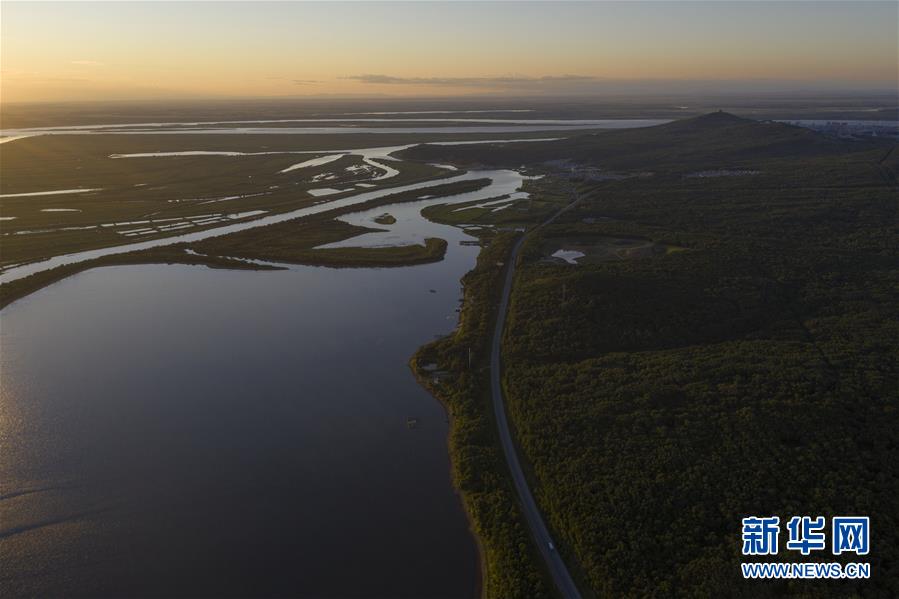 這是7月24日拍攝的華夏東極森林公園景象(無人機照片)。華夏東極森林公園臨近中俄邊界,公園包含南山、西山、蛇山等山體,覆蓋濃江河、大力加湖等水體,資源組合程度較高,是全國少有的“山、水、城、邊”各色風光齊聚的森林公園。新華社記者謝劍飛攝。