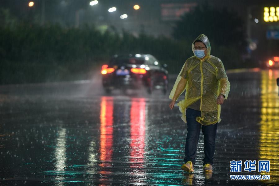 8月12日,在北京市朝陽區(qū)一路段,行人冒雨出行。新華社記者 鞠煥宗 攝