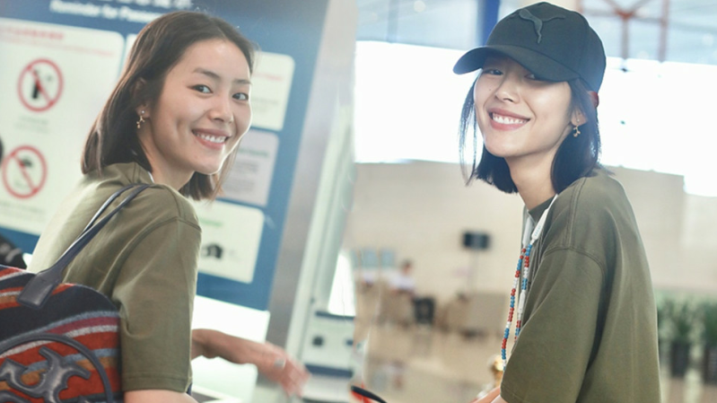 關(guān)曉彤淡定抱臂行走,脖子上掛U型枕毫無偶像包袱。