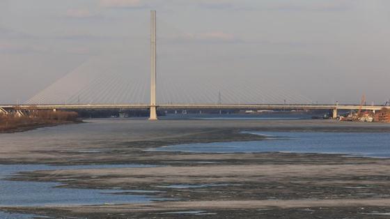 哈爾濱連續(xù)多日氣溫達(dá)到20℃,致使松花江哈爾濱市區(qū)段出現(xiàn)“半江流水半江凍冰”的特殊景象。