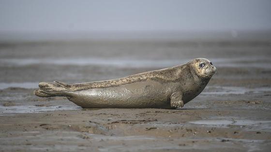 遼寧盤錦雙臺河口海域灘涂上出現(xiàn)大批洄游棲息的斑海豹。每年2月到5月,成群的斑海豹都會洄游至遼河入??谔幓顒印?/p>