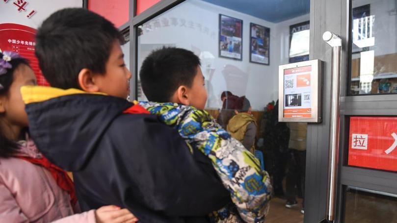 1月29日,在學生自發(fā)“引進”的濟南十畝園小學“無人超市”內(nèi),學生們“刷臉”購物,父母遠端用手機隨時確認支付費用。