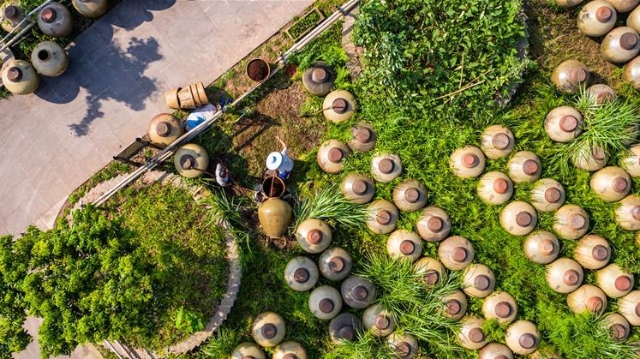 “赤水曬醋”采用固體發(fā)酵繁殖產(chǎn)生天然醋酸菌,醋醅和成品醋都在日光下曝曬而成,故稱曬醋。“赤水曬醋”制作歷史悠久,工序考究,2009年被列入貴州省級(jí)非遺名錄。
