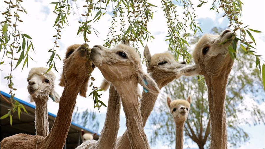 隨著天氣變暖,遼寧省臺安縣一家大型羊駝養(yǎng)殖基地里600余只羊駝集體脫掉了“毛衣”。羊駝剪下的羊駝絨經(jīng)過加工可以制成各種產(chǎn)品。