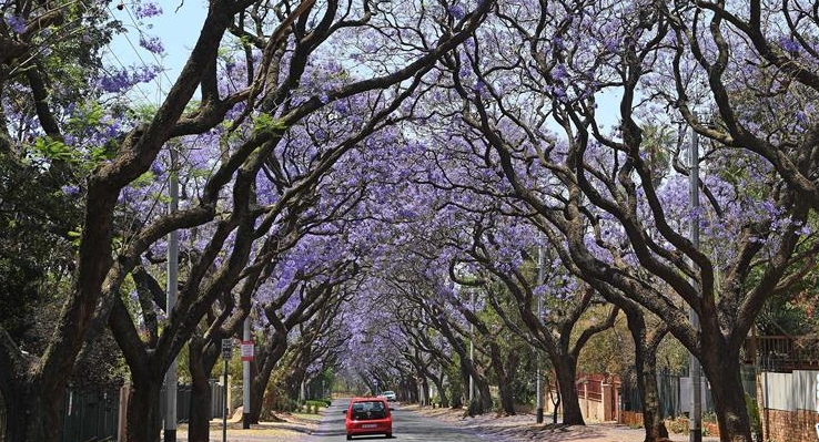 每年十月,種植有數(shù)萬株藍花楹樹的比勒陀利亞都會成為一片紫色的海洋,故有“藍花楹之城”美譽。